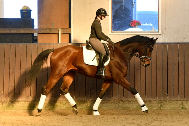 Han bevæger sig elastisk og rummeligt i alle tre gangarter. Trods hans 5 år er hans ridekarriere kun lige startet og han er redet i ca 4 mdr.